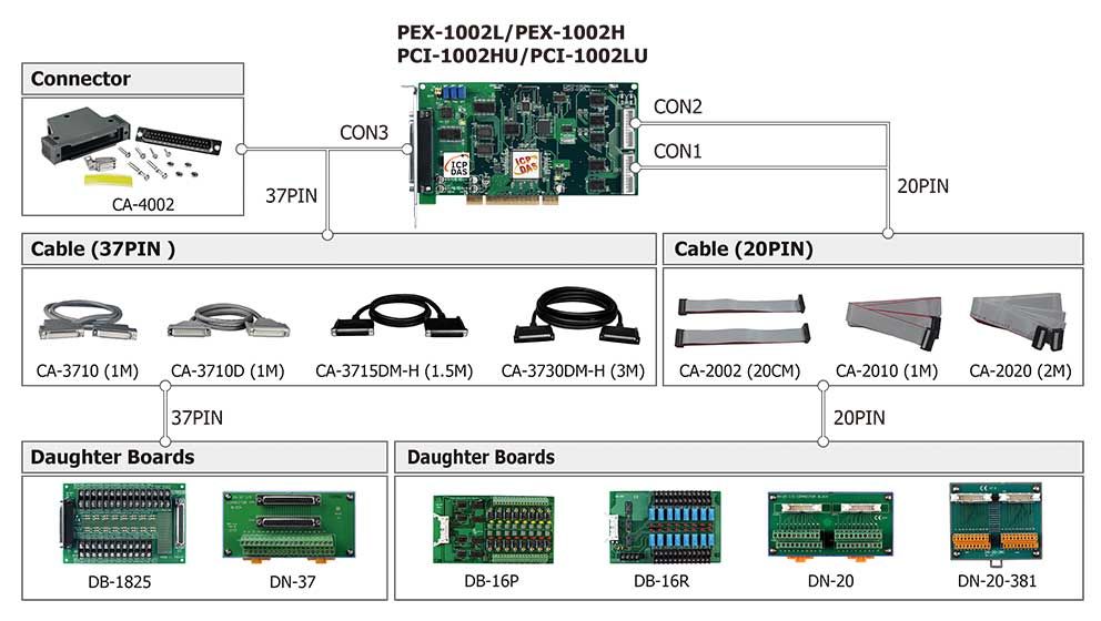 Female DB37 x 1 20-pin box header x 2 |